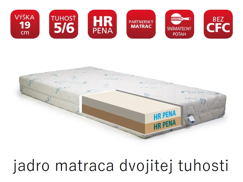 - ortopedická studená HR pena s dvojitou tuhosťou 5 stredne tvrdý / 6 tvrdý